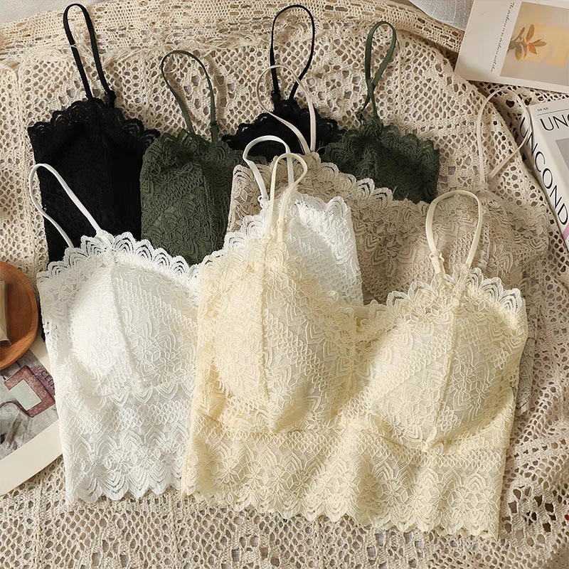 221 # フランスの新しいレースのセクシーな胸のクッション付きの美しい背中は胸の下着の中で外でキャミソールの女性を着ます。