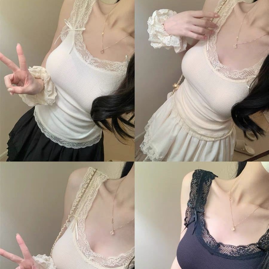 2038 #2024新型韓国系デザインモデル秋冬の重ね着スタイルの甘辛い首に痩せたレースのストラップが見える