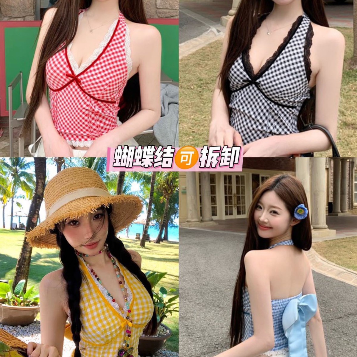 1835 # ニッチチェック柄ベストサスペンダーレディース夏パッチワークレースインナーセクシーなホルターネックホットガールトップ
