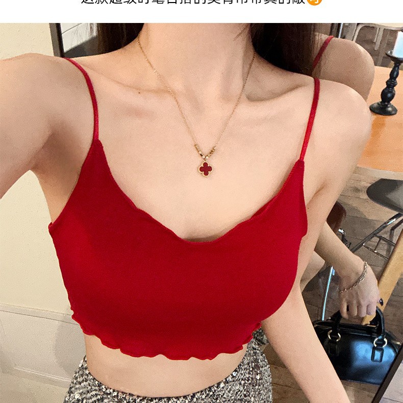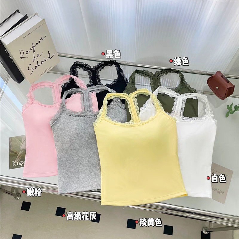 L5307を日本語に翻訳してください # ピュアセクシースタイルレースステッチホルターネックキャミソールレディース夏用胸パッド付きインナーレイヤリングトップ