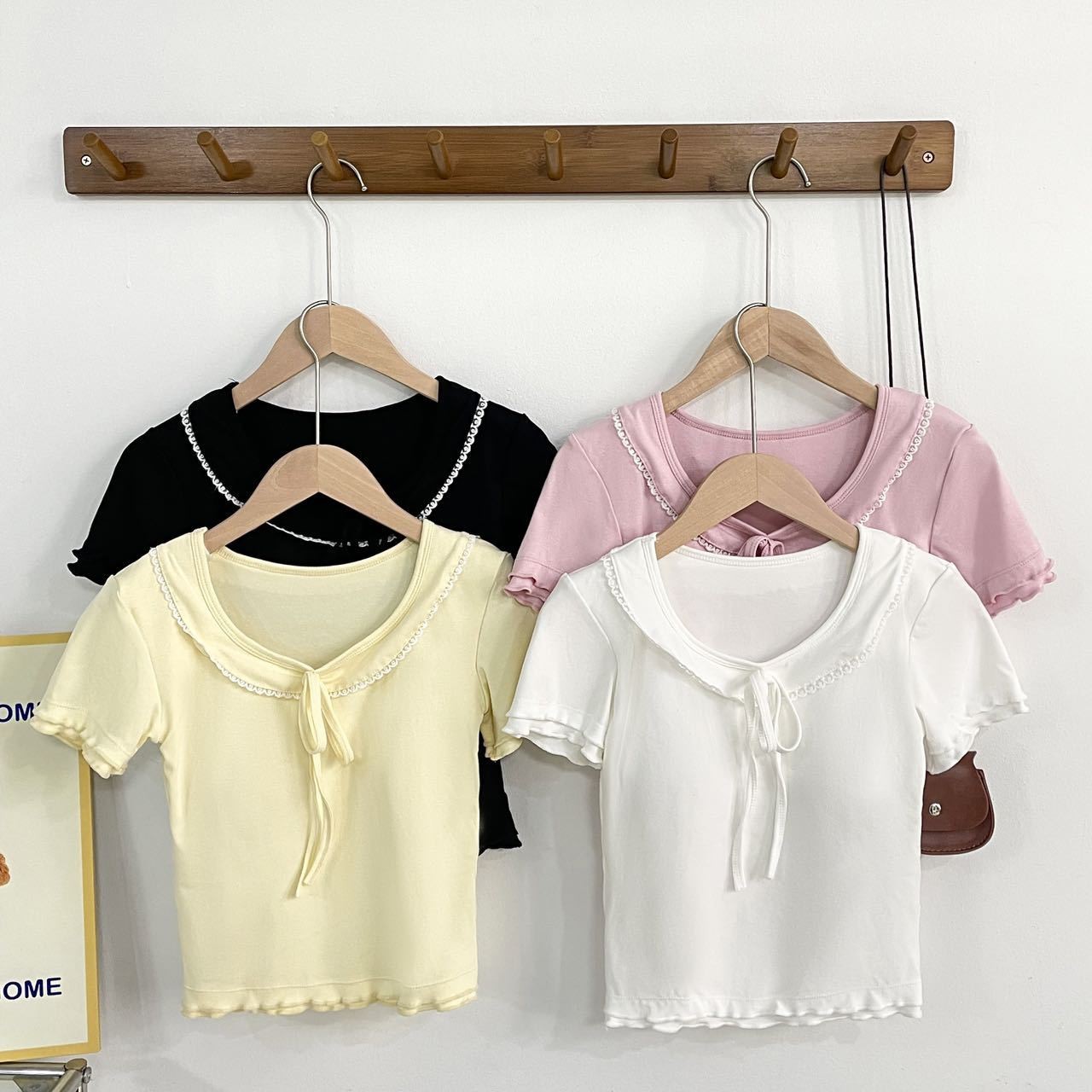 1839 # 人綿蝶結びレース半袖tシャツ