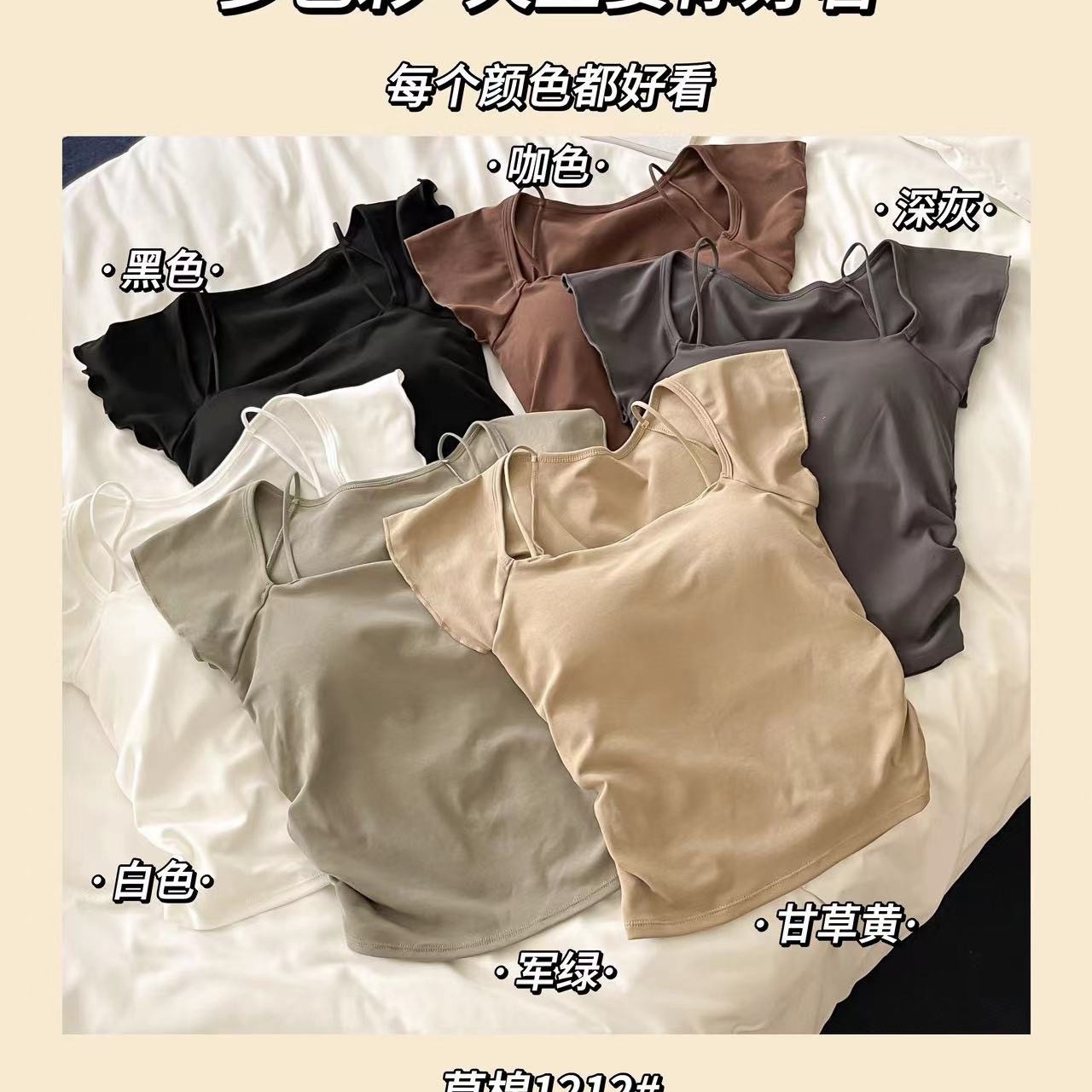 H330 # 純欲砕花ボタン小ストラップ女性夏は胸パッドギャルの短い上着を持っています。