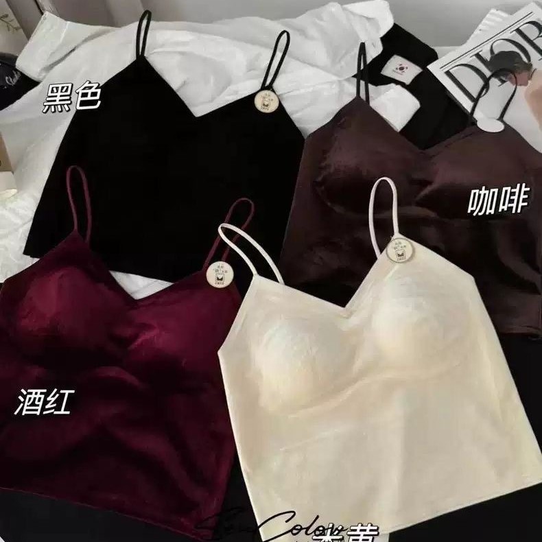11816 # 秋の毛磨きvネックゴールドベルベット一体カップ胸パッド付きフレンチセクシーなチョッキのストラップ
