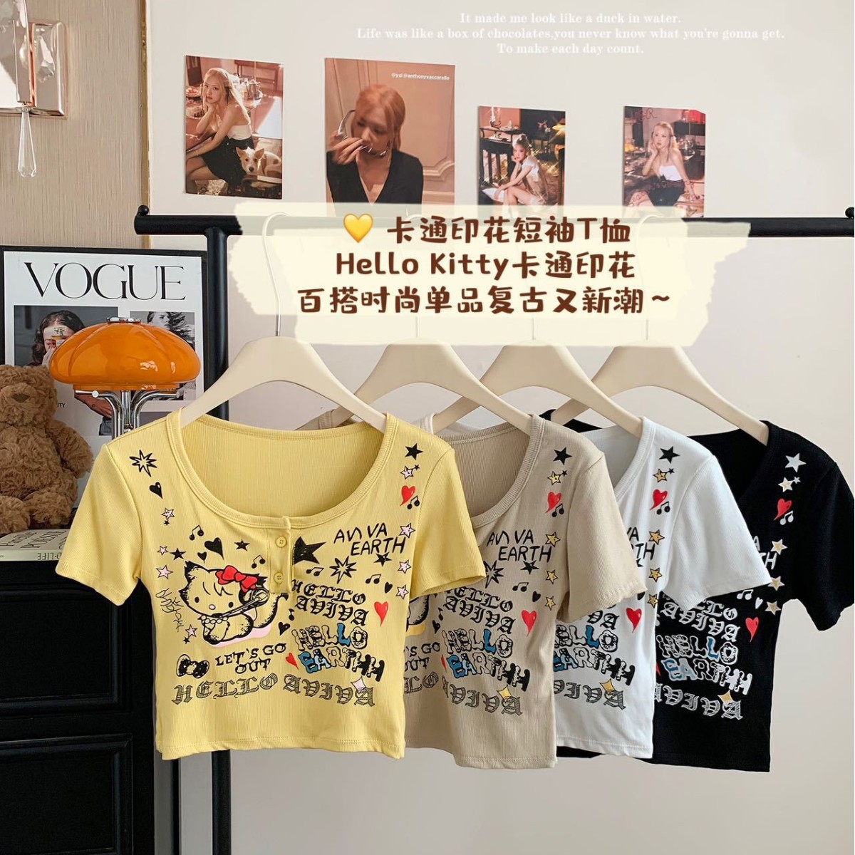66005 # ハローキティプリントキャミソールレディースサマーストリートホットガールフルプリントショートクロップトップ