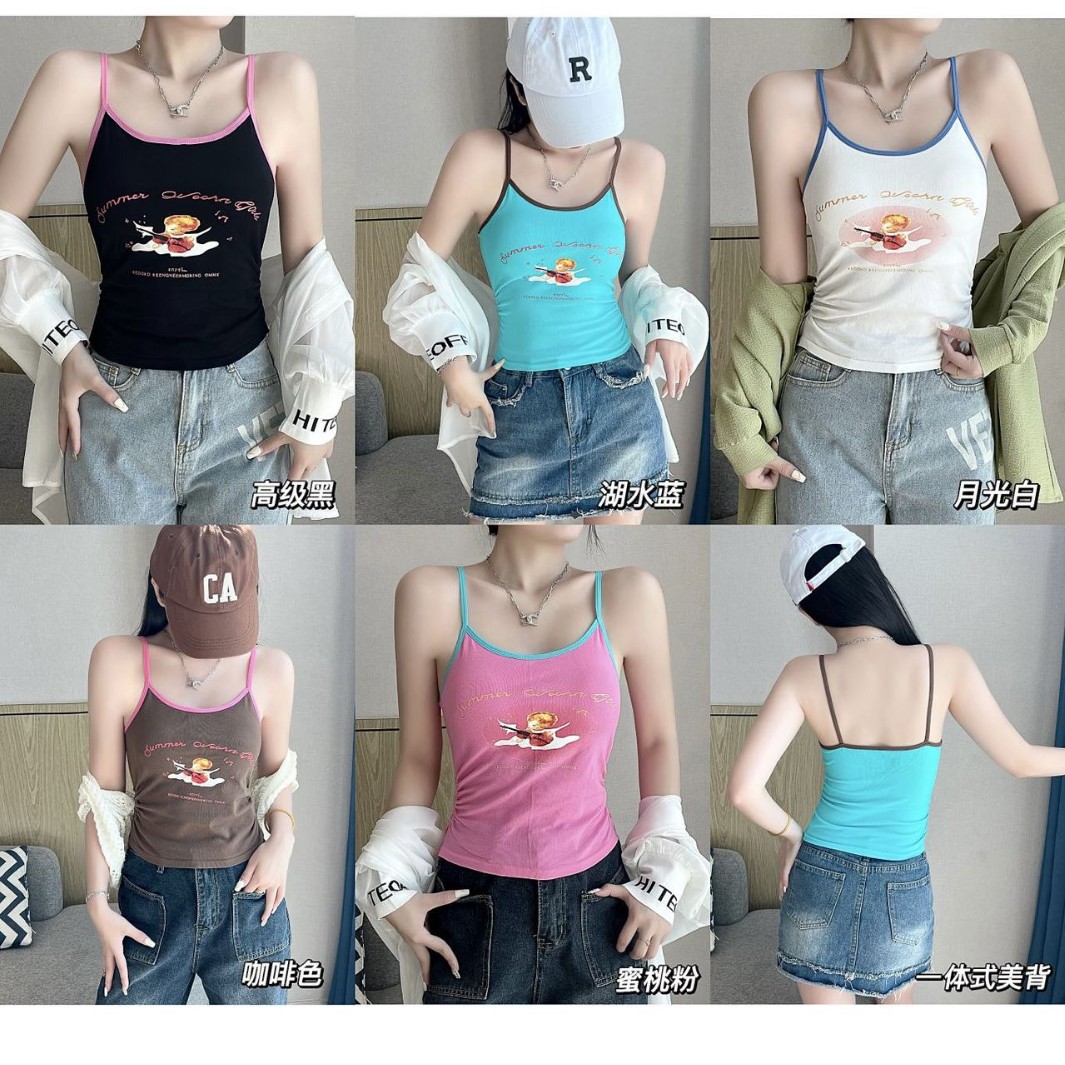 1862 # ホットガールの純粋な欲望のキャミソール、胸パッド付き、インナーとアウター、スパゲッティストラップ、ボトムス、美しいバックトップ