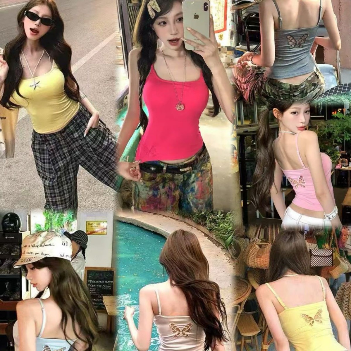1920 # 新しいレーヨン中空蝶デザイン、胸パッド付き、女性用ショートスリムフィット多用途トップ