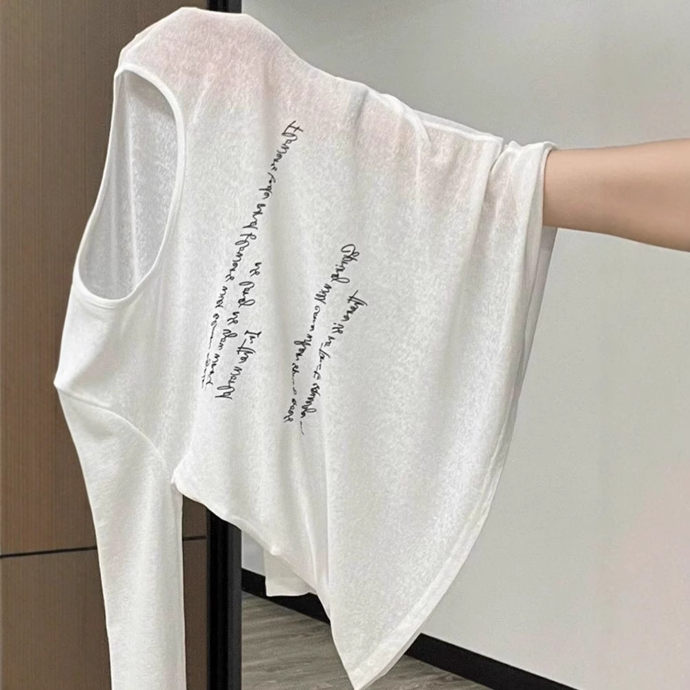 2074fs 薄型微透け日焼け止めブラウス長袖 Tシャツレディース万能レタープリントルーズボトムストップ