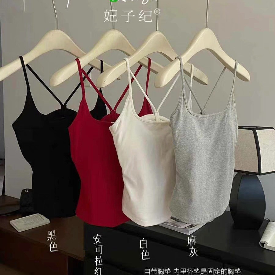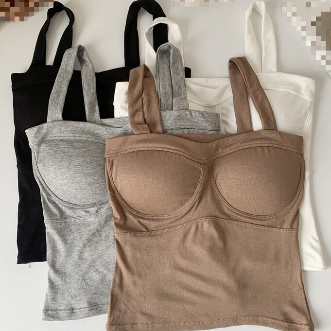 2511-1 # 韓国系ファッションポイント一体式コースターの方襟キャミソールの快適なセクシーな甘い風