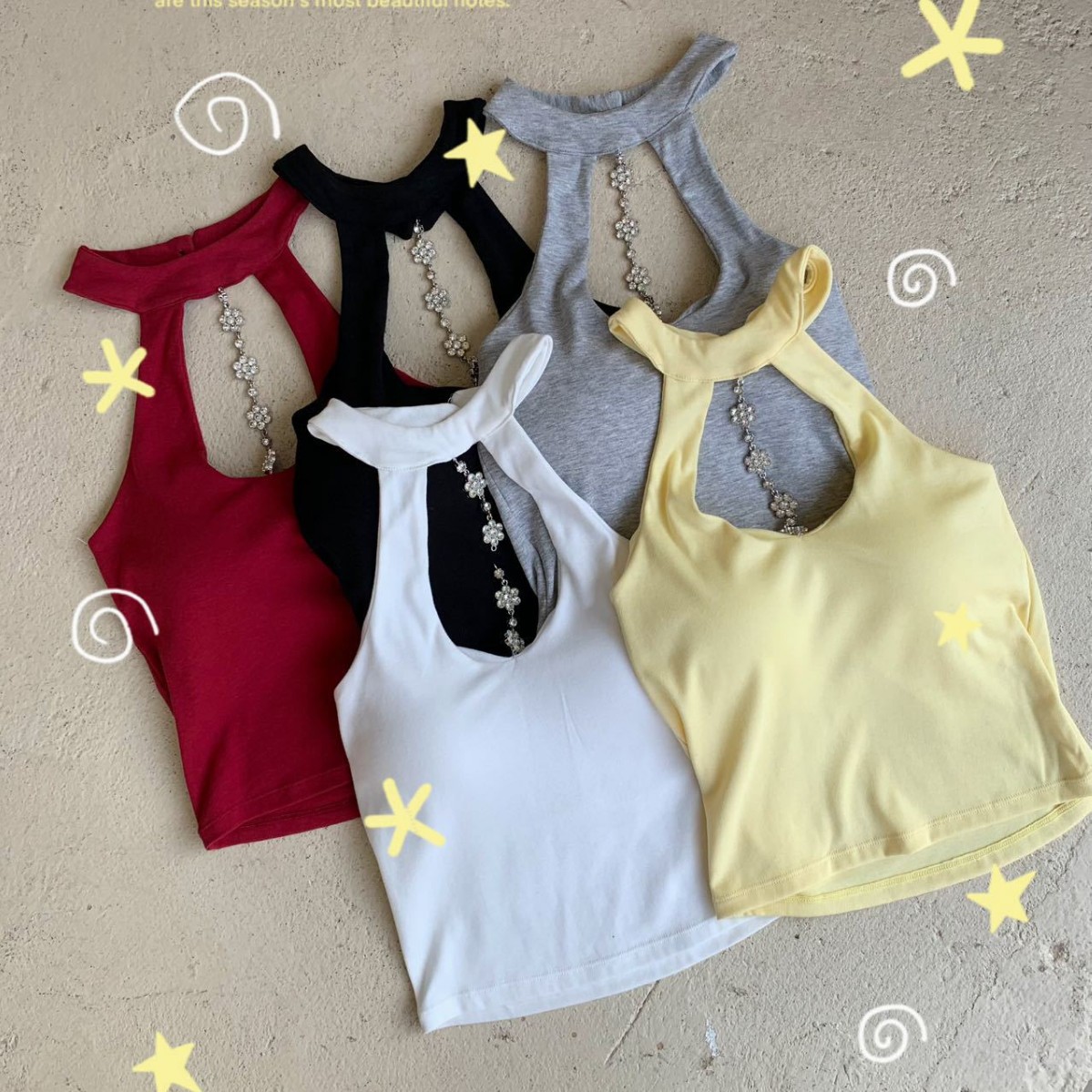 1848 # セクシーな透かし彫り胸パッド付き首ストラップ付きベスト