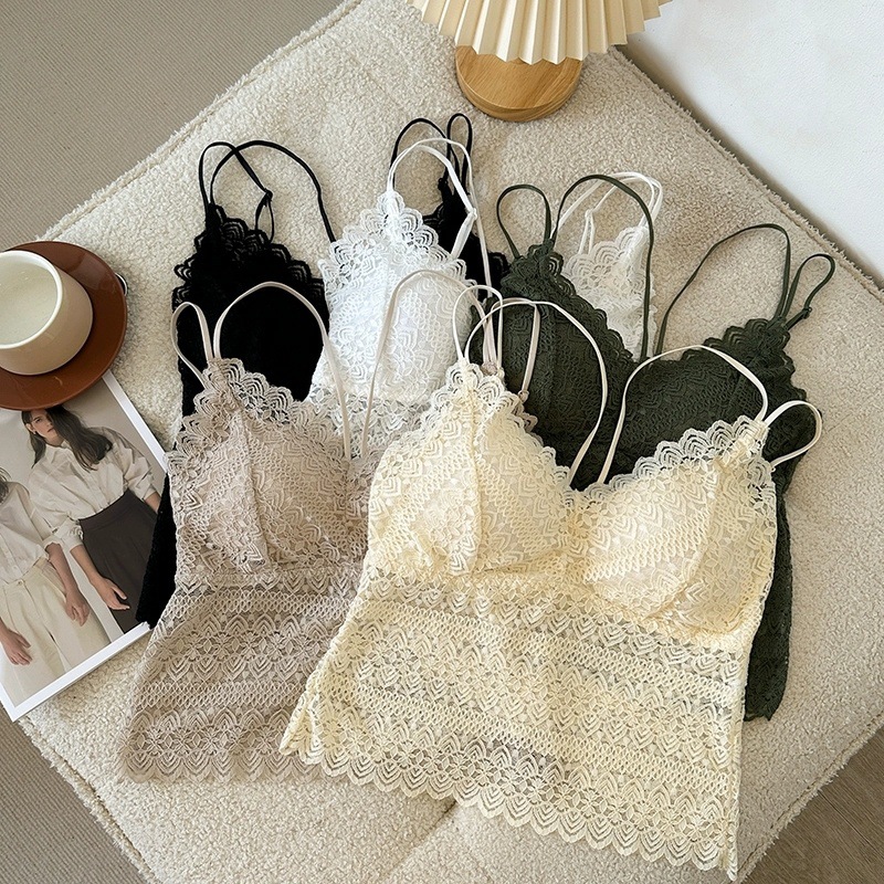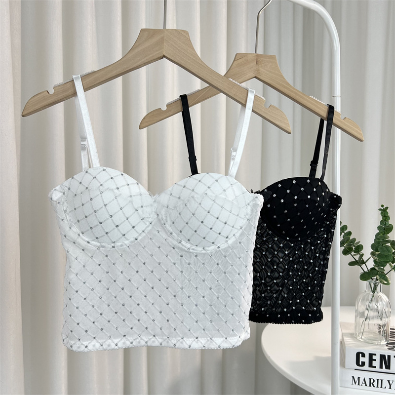 L279不規則なハスの葉の縁のサスペンダーのベストは胸のクッションを持っています。