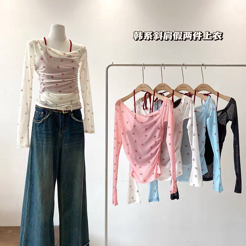 1820 # 純欲ギャル蝶結びプリント薄手網糸日焼け止め服女性セクシー快適カジュアル
