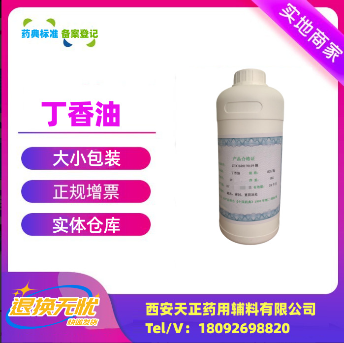 薬用級補助材料クローブ油1kg 1本に登録薬局方基準8000-34-8芳香剤がある
