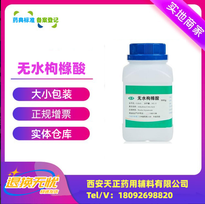 薬用補助材料無水クエン酸500g 1本無水クエン酸金山diamond登録薬局方基準