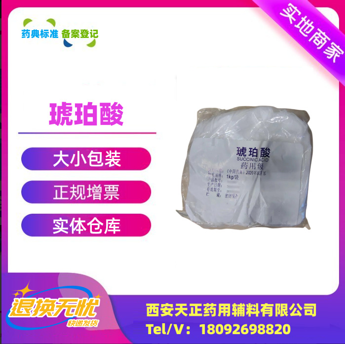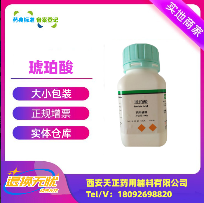 薬用補助材料コハク酸500g一本のコハク酸イコン酸イコン登録は品質検査票110-15-6があります。