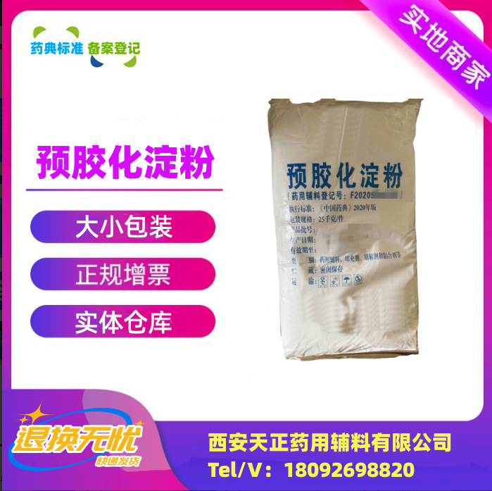 薬用級補助材料事前糊化打錠澱粉25kg 1袋の可圧性澱粉cp 2020資格登録番号がある