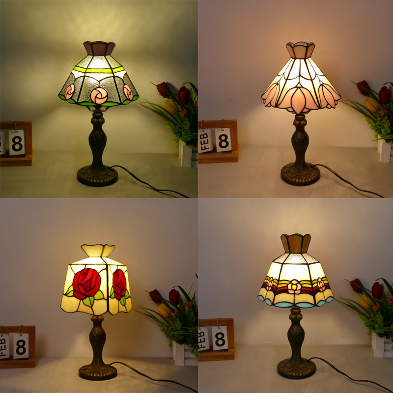 老上海復古情薔薇家庭用電気スタンドティファニーカラーガラス寝室書斎中号電気スタンド