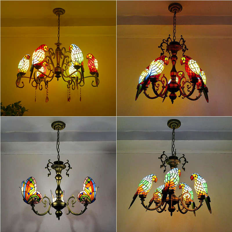 メーカーティファニー寝室ステンドグラスオウムシャンデリアレトロシンプルダイニングバーktvマルチシャンデリア