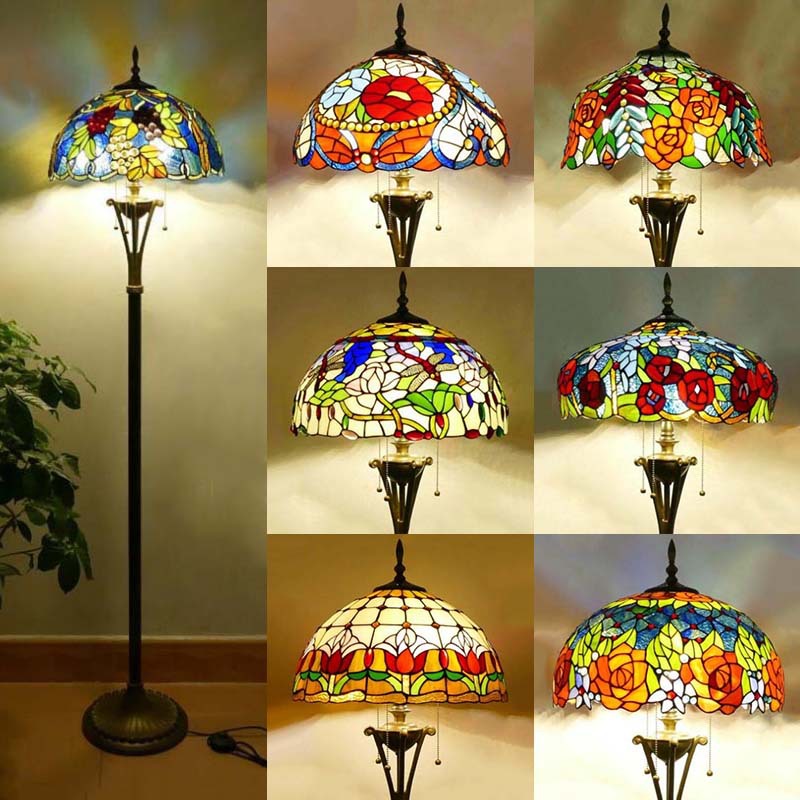 ヨーロッパ式レトロ田園ティファニーカラーガラス客間レストラン寝室ホテル床灯バー瑠璃灯