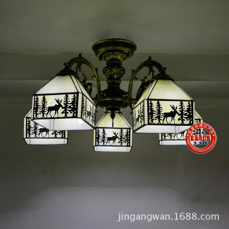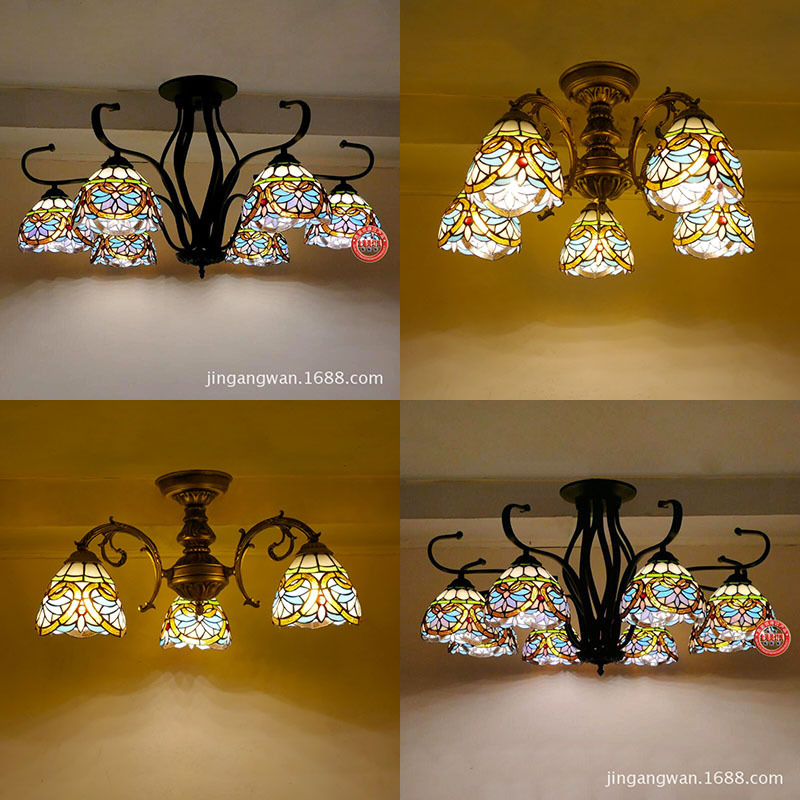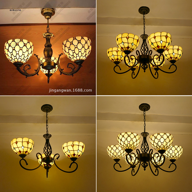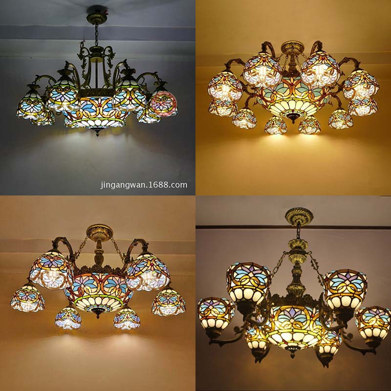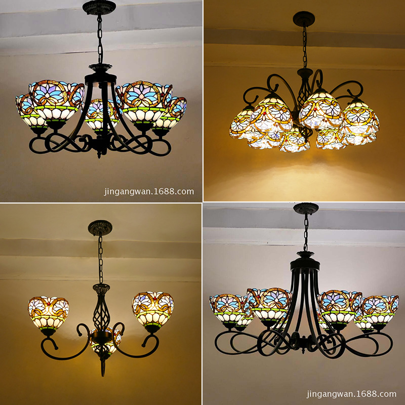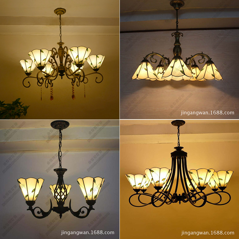 ヨーロッパ式ティファニー復古シャンデリア簡易ヨーロッパ客間灯ガラス灯複式別荘寝室灯アメリカ式シャンデリアメーカー