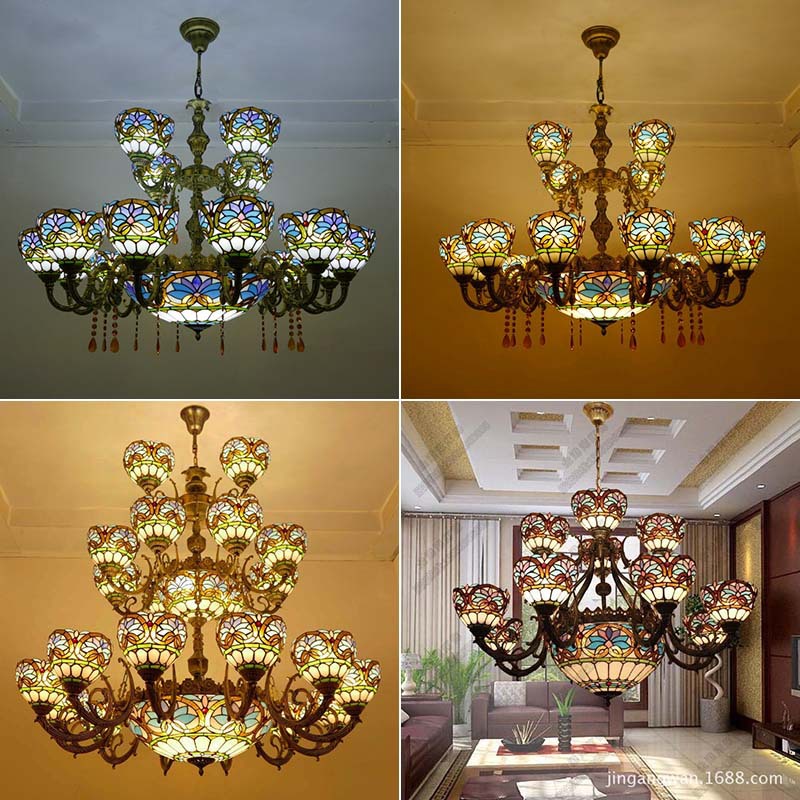 ティファニーレトロ別荘田園多層ステンドグラスシャンデリア複式楼灯ホテルロビー工事灯