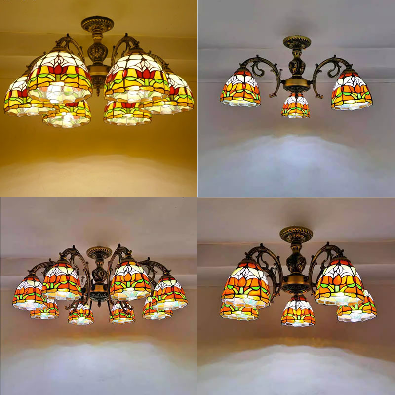 ヨーロッパのレトロなカラーガラスのシャンデリアはシンプルです。