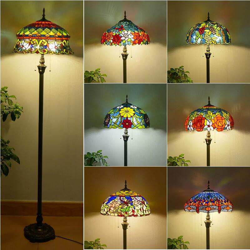 新型上場ティファニー客間寝室カラーガラス電気スタンド復古田園ホテル民宿装飾電気スタンド