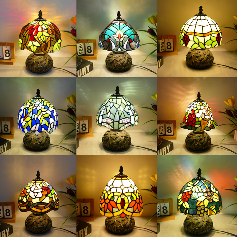カラーレトロガラスティファニーライトクリエイティブデスクトップアート寮ライト欧米式カラー寝室電気スタンド