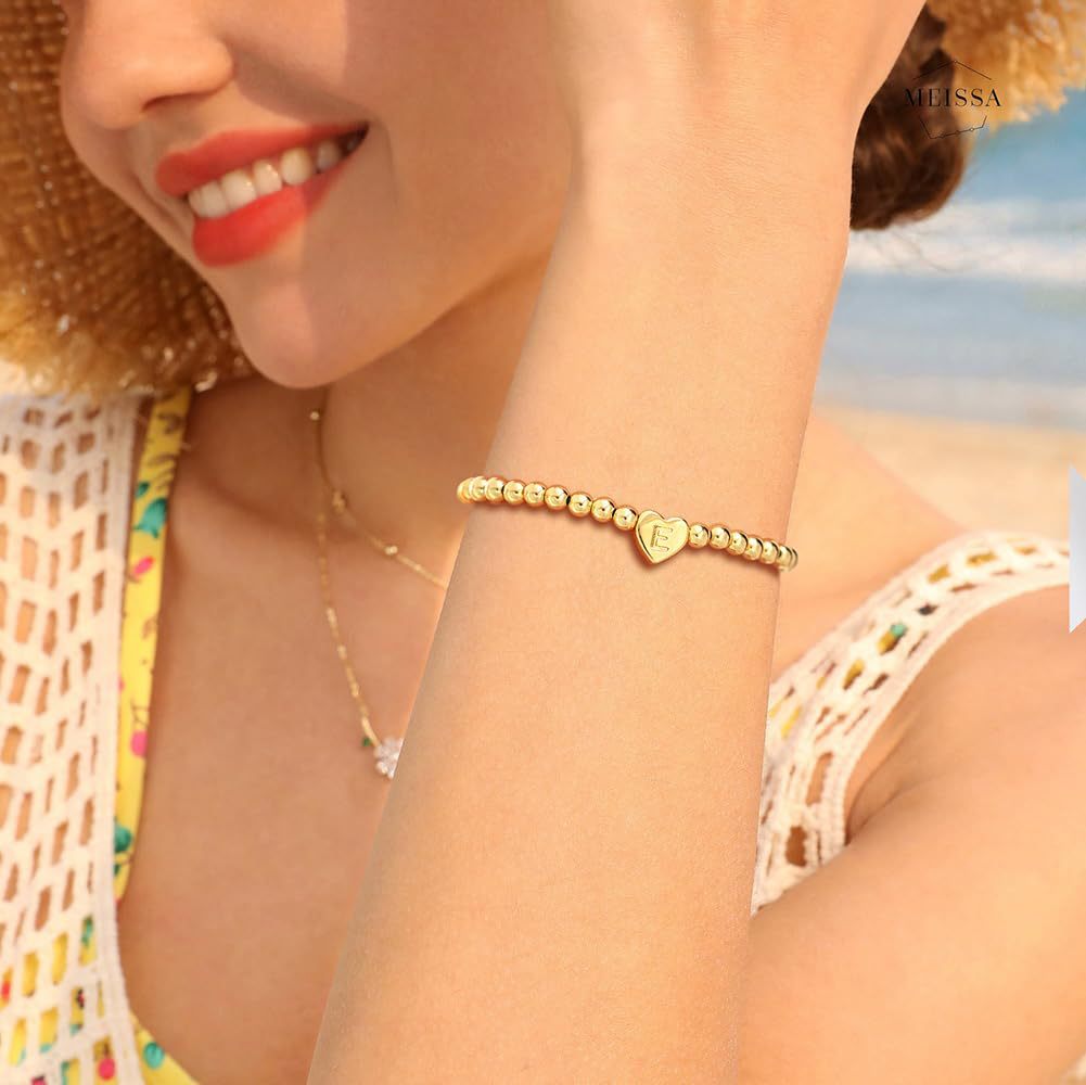 欧米の熱い販売の金の玉の26アルファベットのブレスレットの女性のファッションのボールの円形のペンダントのブレスレットの銅のビーズの弾力の手の串