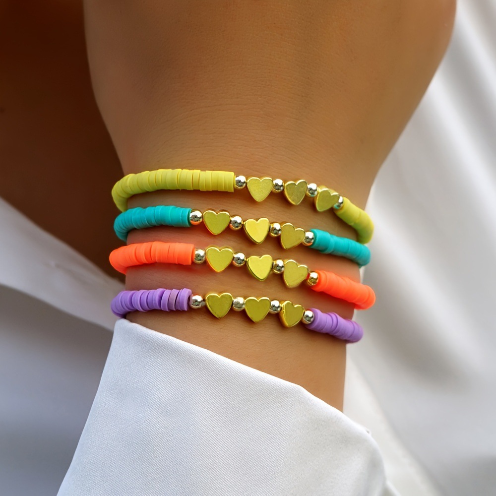 国境を越えたボヘミアン多層重ね着アクリル愛ブレスレットセット弾力カラー軟陶ブレスレットセット