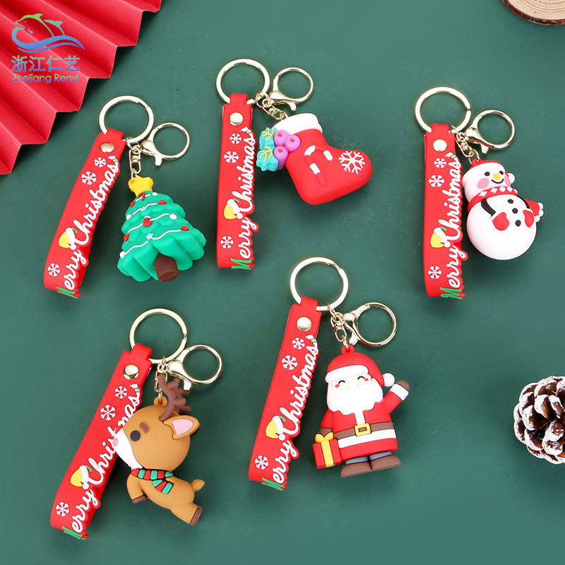国境を越えたクリスマスの小さなプレゼントの漫画のキーホルダー雪だるまサンタクロースの公の子のバッグのペンダントのキーホルダーのペンダント