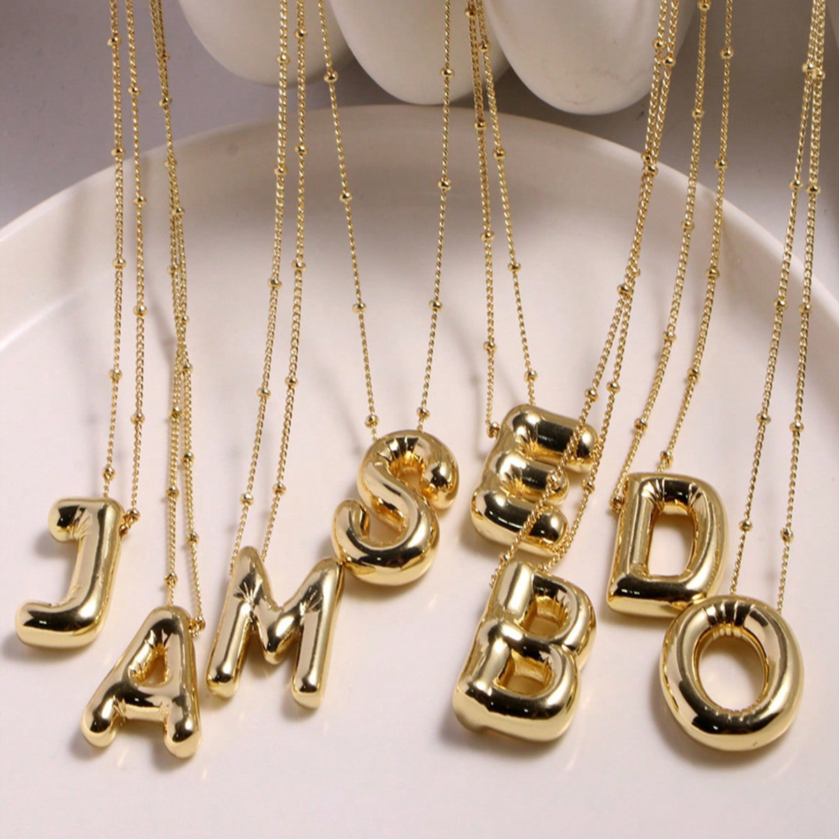 クロスボーダーの人気ステンレスの泡の初期のアルファベットのネックレスは簡単に重ねて太った立体の光明のペンダントをかぶります。