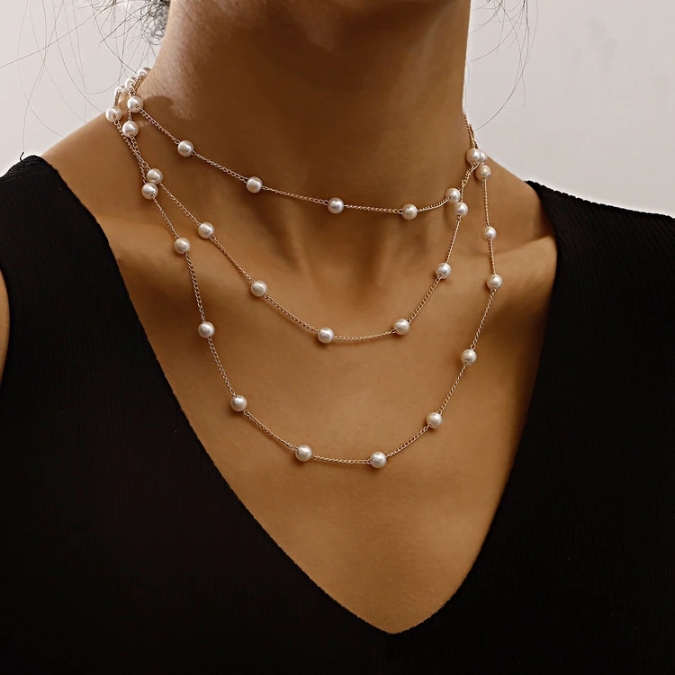 欧米の国境を越えて真珠の細い鎖のネックレスのアクセサリの女性の大衆の気質の精巧で高級な復古の鎖骨の毛の鎖