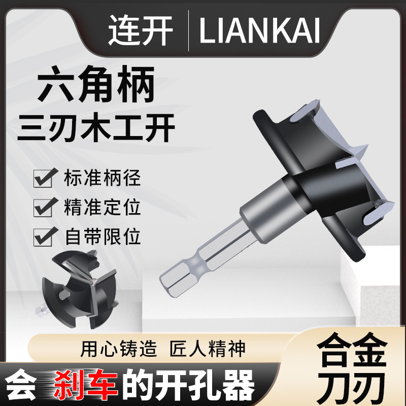 木工穴あけ器リミットヒンジ付き35mm専門キャビネットドア飛行機ヒンジ三刃合金ドリル六角ハンドル