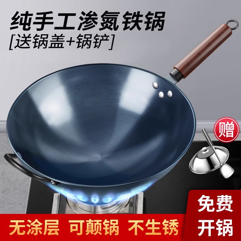 鉄鍋炒め鍋は鍋にくっつかない家庭用の古いコーティングなしガスコンロ専用鍋章丘丸底炒め鍋