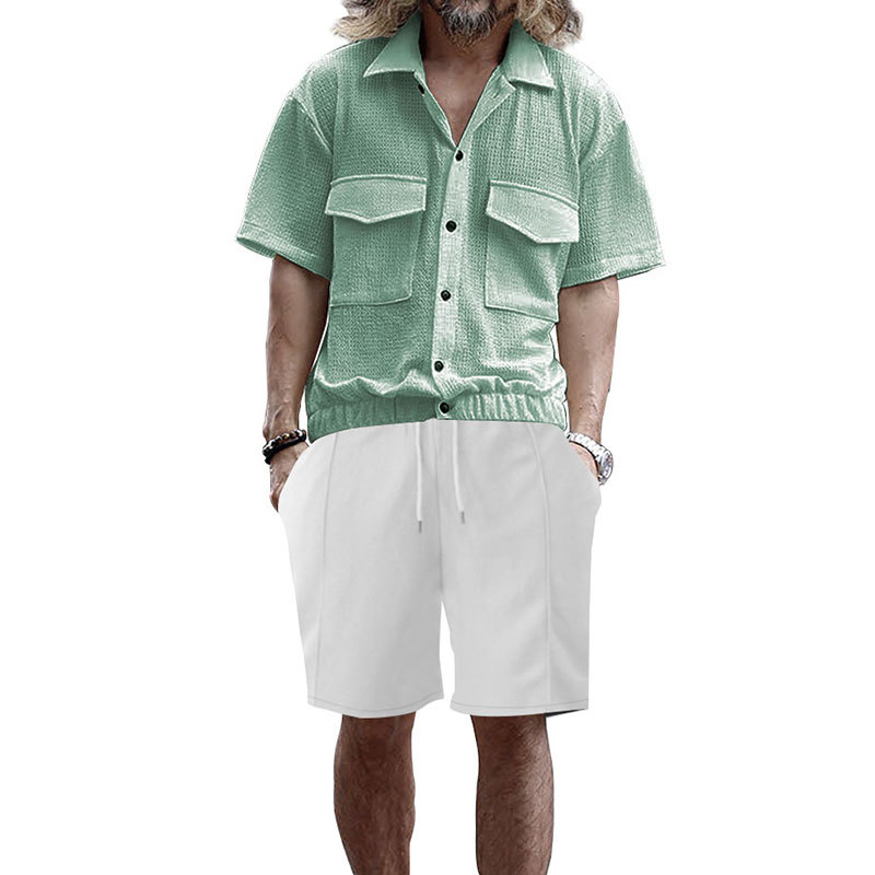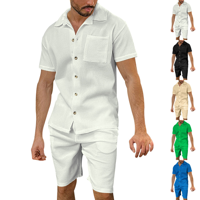 2025年夏新作メンズカジュアルスーツ韓国風スリムフィット半袖シャツメンズカジュアルスーツ海外販売卸売