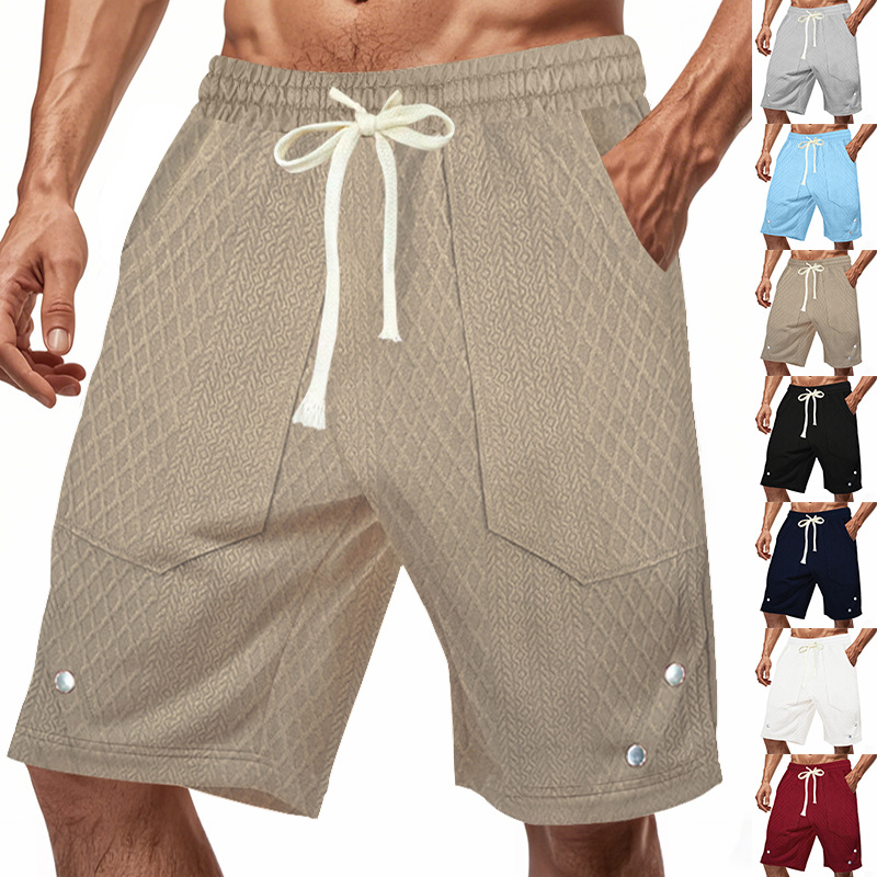メンズクロスボーダー新作ワッフルショートパンツ通気カジュアルTEMU热い贩売ソリッドカジュアルミディアムパンツ男性五分丈パンツ