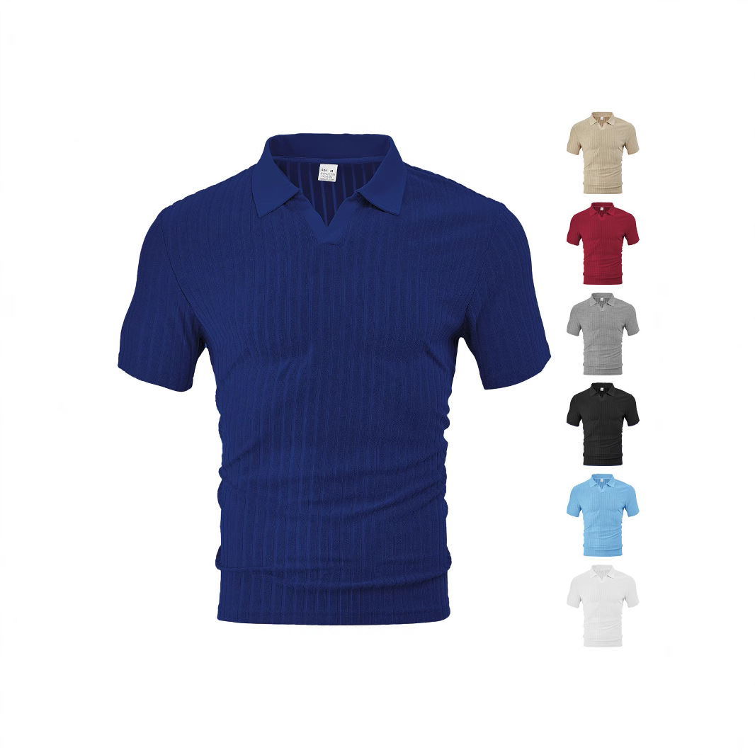 メンズ男性夏半袖通気カジュアル薄手25アマゾン新ジャカードヘンリーシャツファッションpoloシャツ