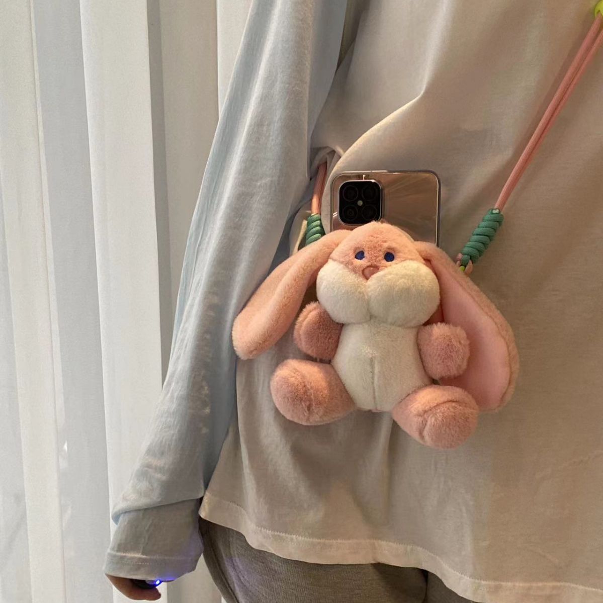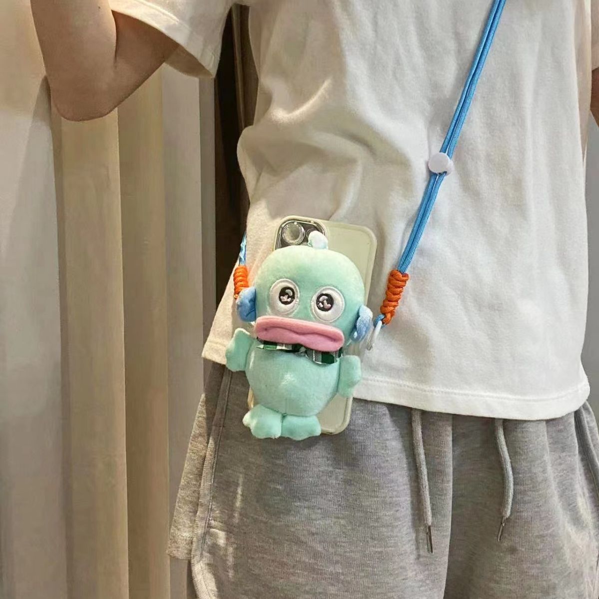 かわいいアニメの爆発的な携帯電話のバッククリップの人形の斜めのショルダーチェーンは、ぬいぐるみのストラップにまたがって両手の小銭入れを解放します。