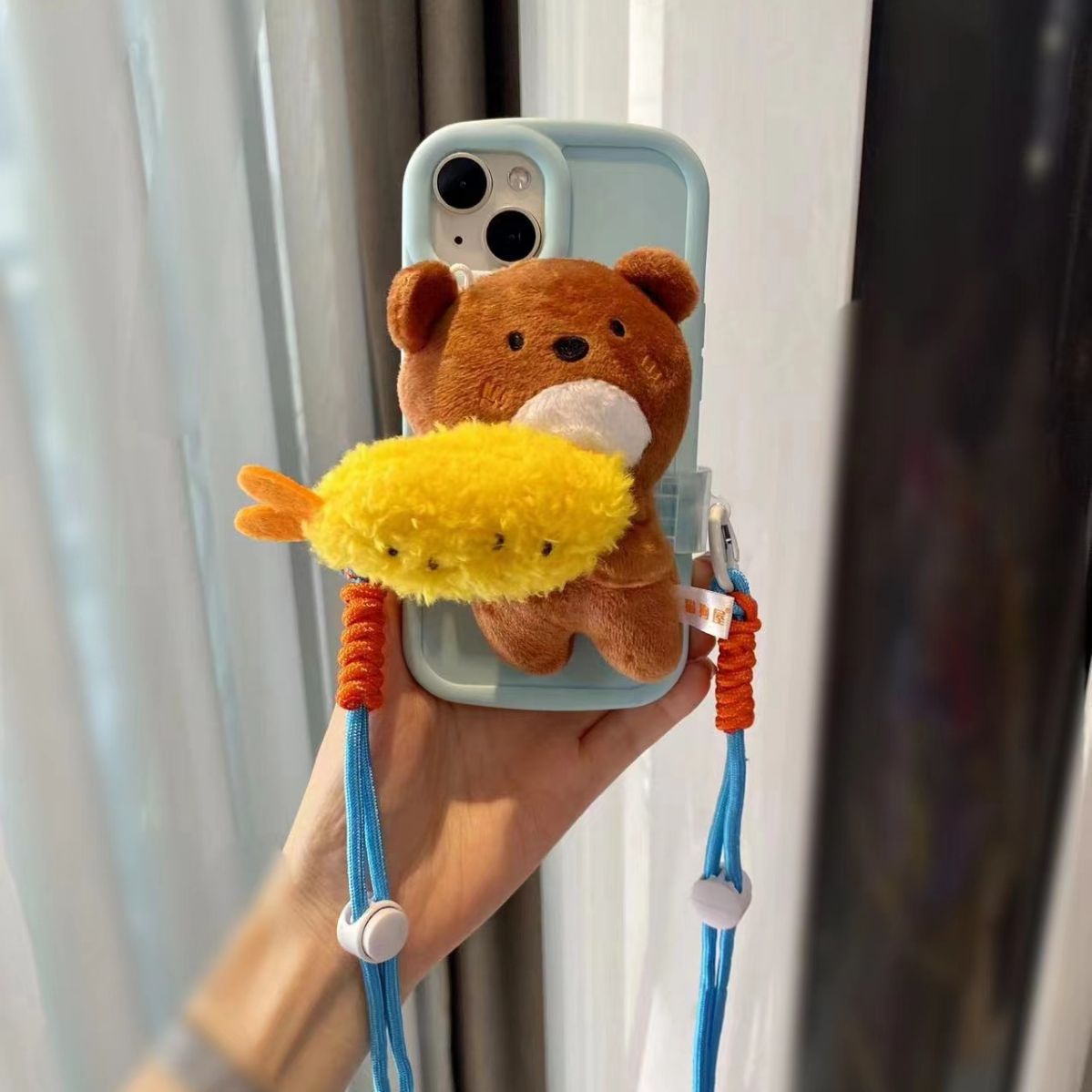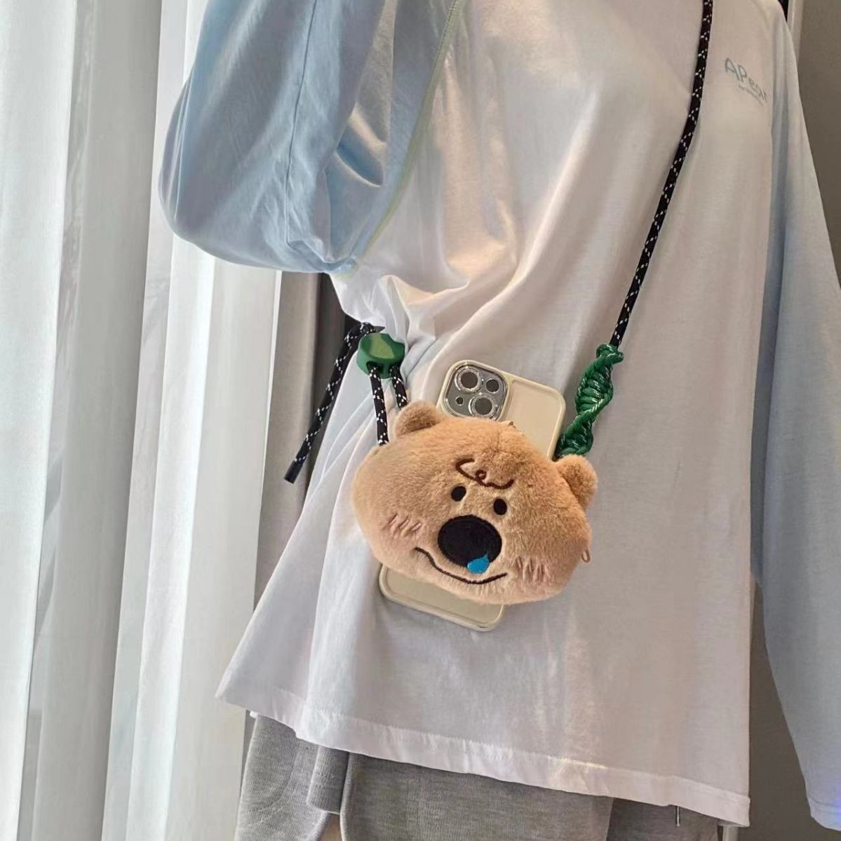かわいいアニメの爆発的な携帯電話のバッククリップのぬいぐるみの斜めのショルダーチェーンは斜めに人形のストラップにまたがって両手の小銭入れを解放します。