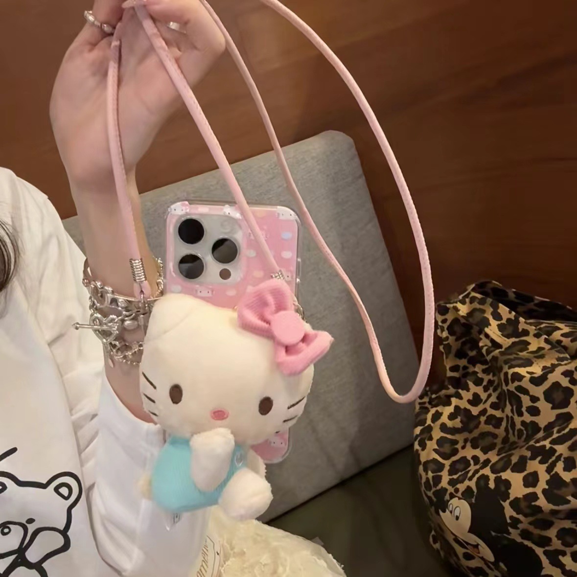 爆発的なぬいぐるみ人形人形かわいいアニメ携帯電話のバッククリップの斜め掛けチェーンが斜めにストラップにまたがって両手の小銭入れを解放する
