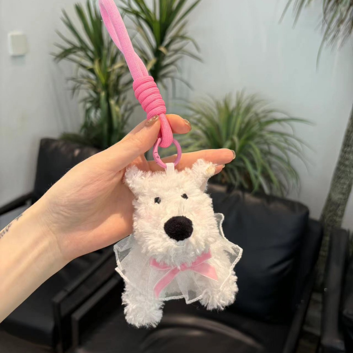 爆発的な西高地のキーホルダーは携帯電話のストラップを持っていて、車にぬいぐるみの人形の携帯電話のバッククリップを飾っています