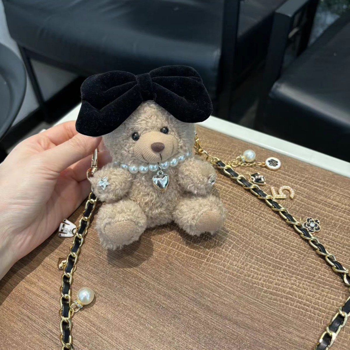 最新のかわいいアニメの携帯電話のバックは斜めに掛けてチェーンのぬいぐるみの人形のぬいぐるみのストラップにまたがって両手の小銭を解放します。