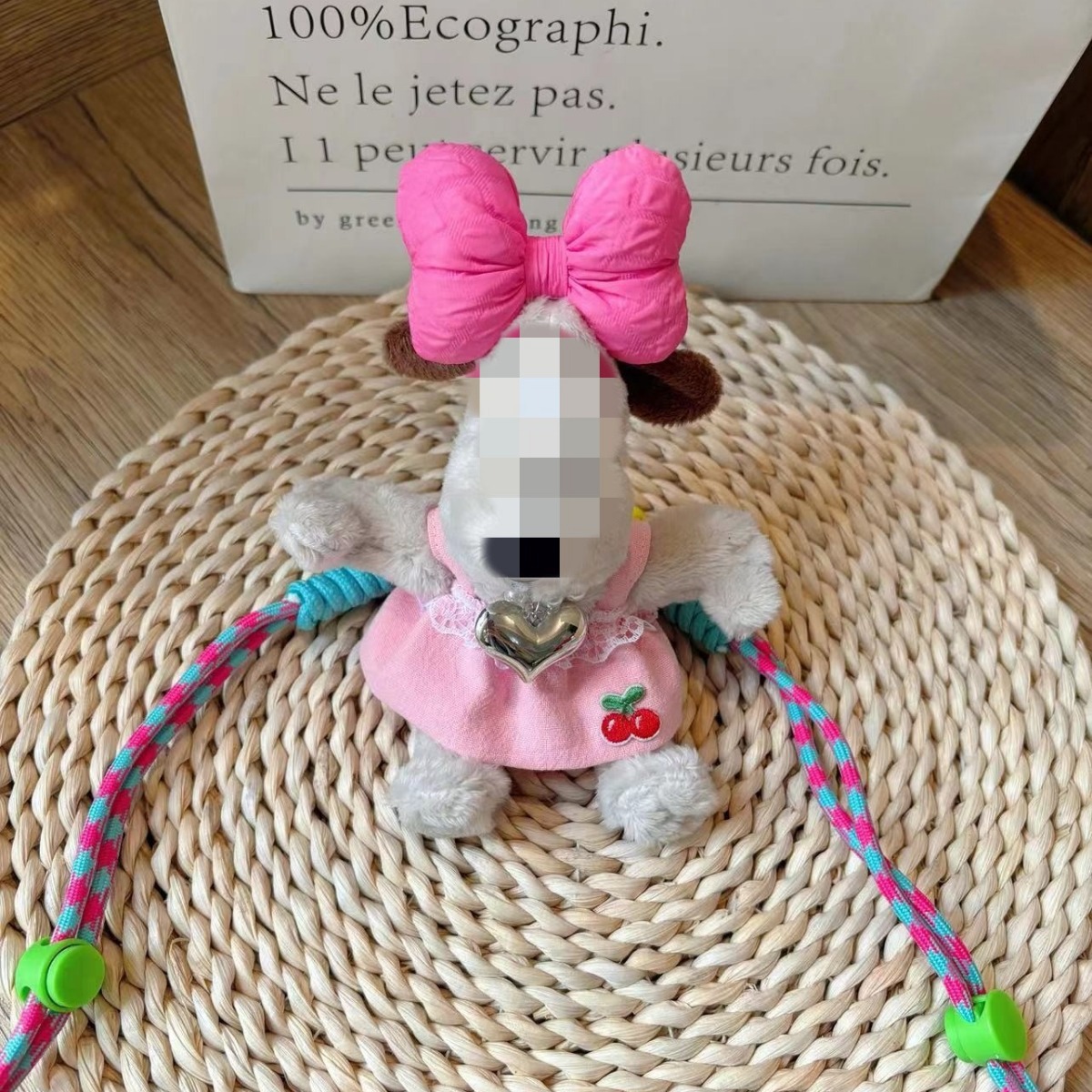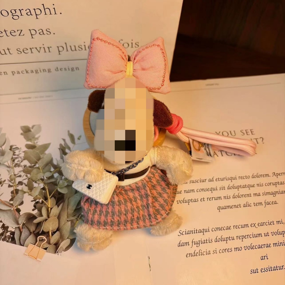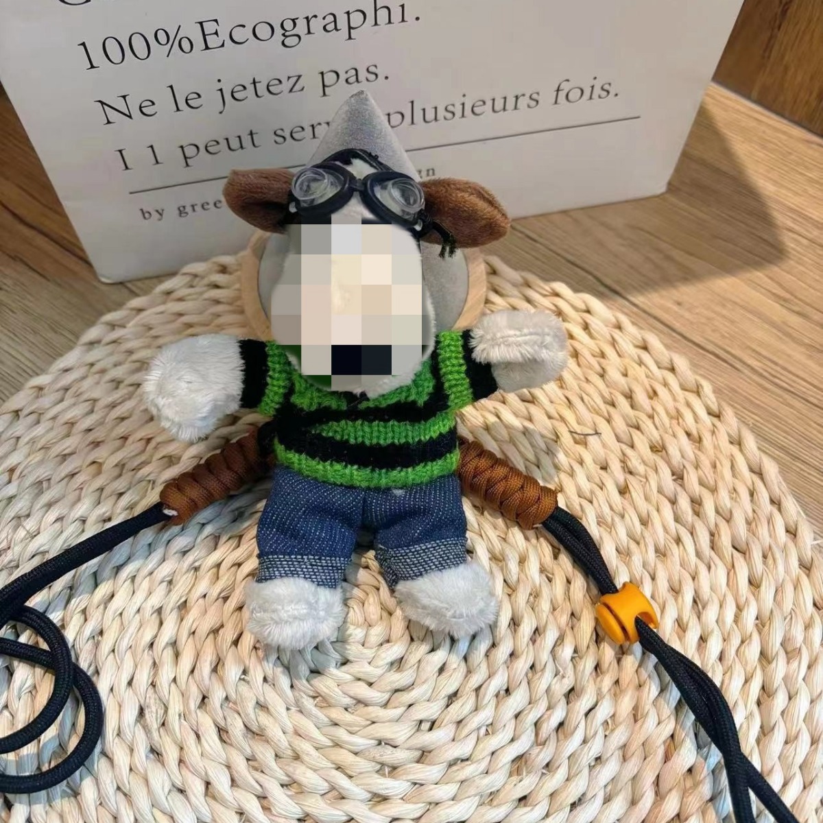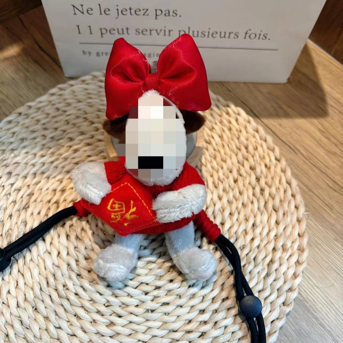 新13cmのパイロット犬の背中に韓国版の斜め掛けを挟んで、縄にまたがるぬいぐるみのプレゼントを掛けます。