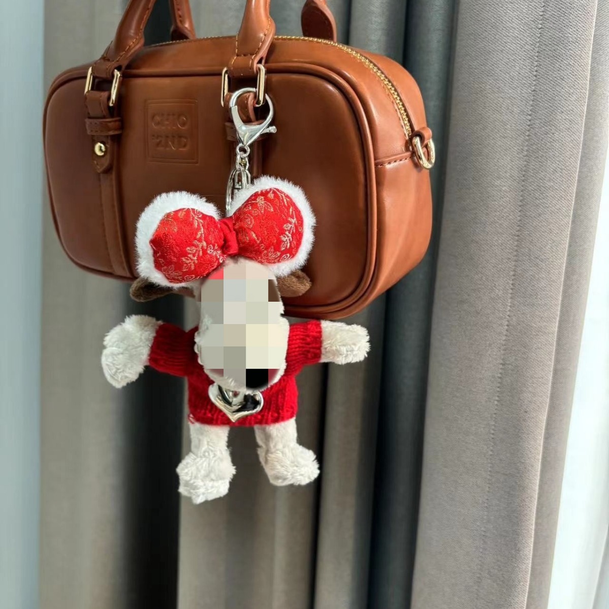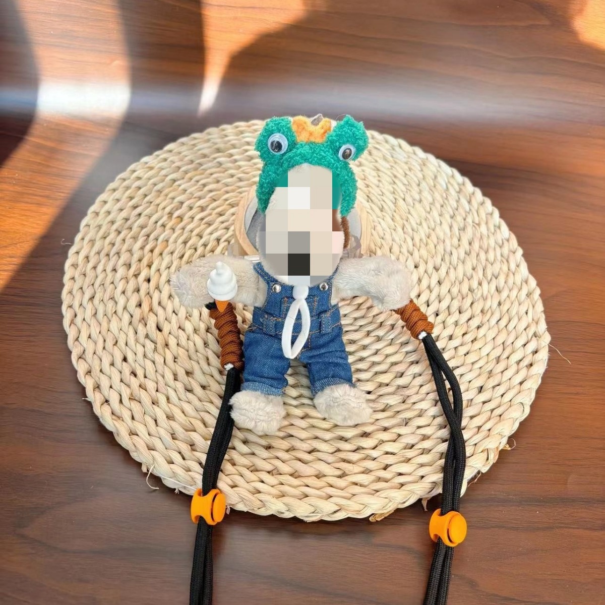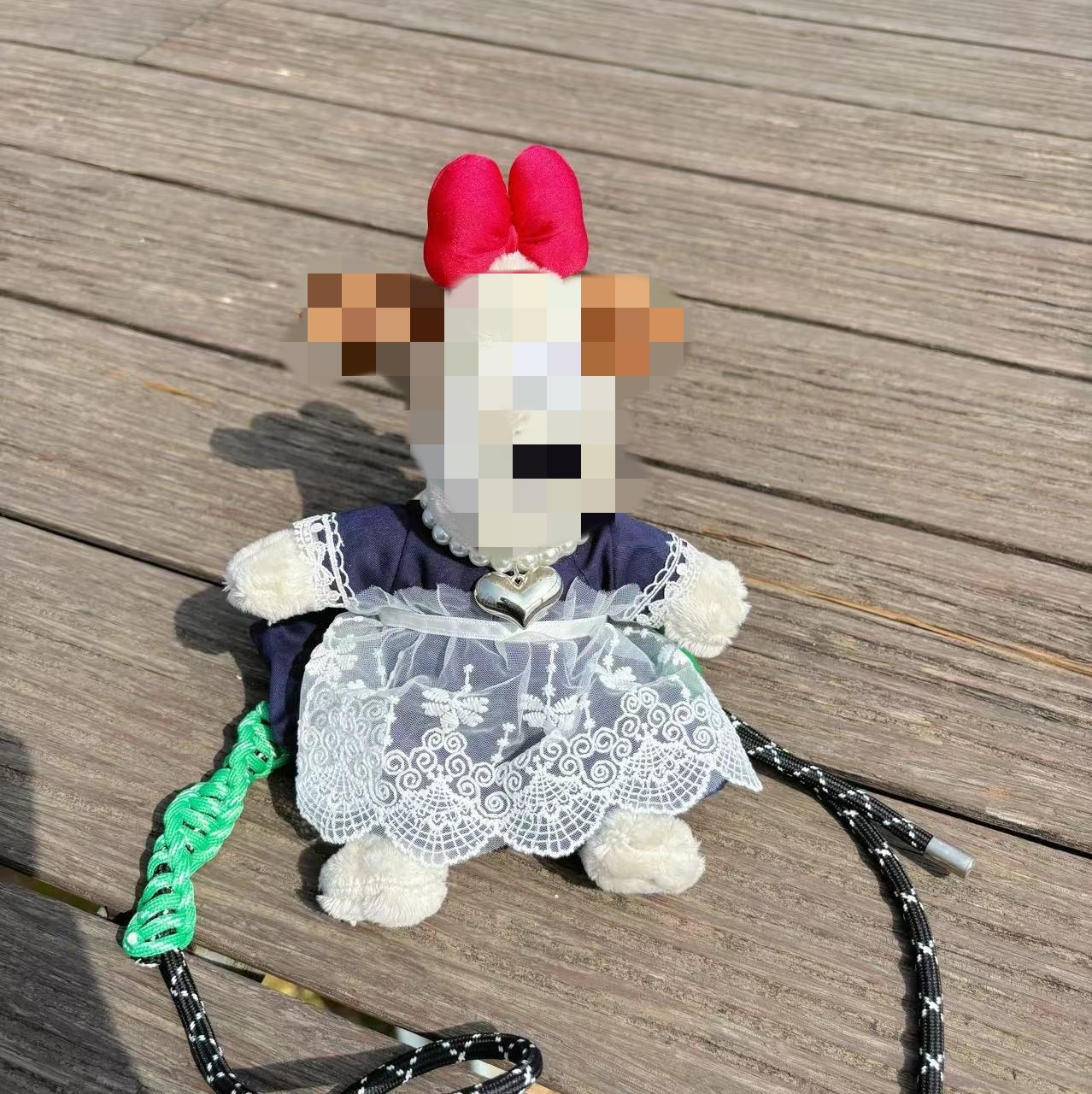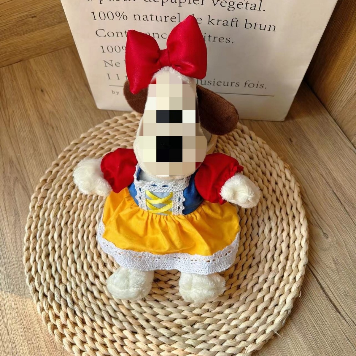 新13cmのパイロット犬の背中に韓国版の斜め掛けを挟んで、縄にまたがるぬいぐるみのプレゼントを掛けます。