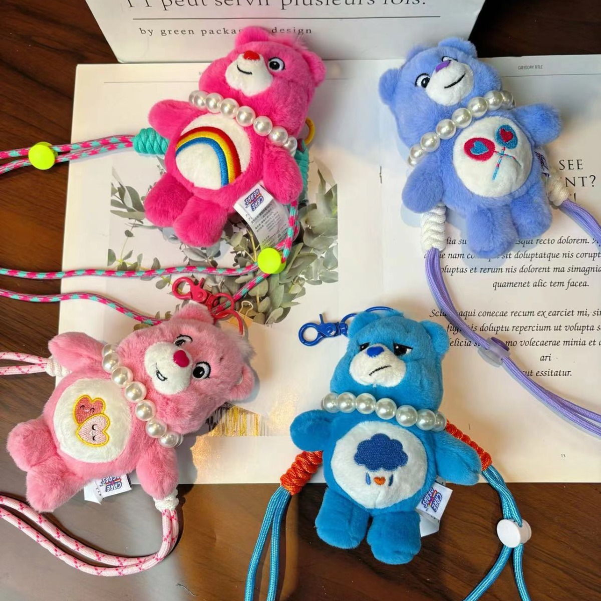 レインボーベアかわいい人形漫画ぬいぐるみかわいい携帯電話バッククリップ斜め掛けストラップ装飾カラーストラップ