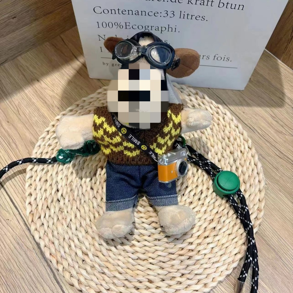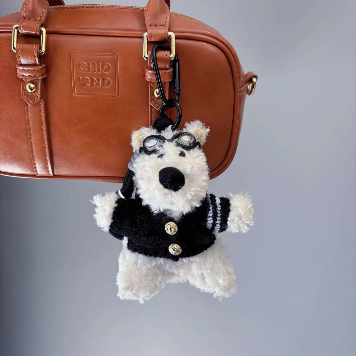 韓国版の新しい13cmのパイロットカメラの犬の背もたれのキーホルダーの斜め掛けのひものぬいぐるみのぬいぐるみのペンダント