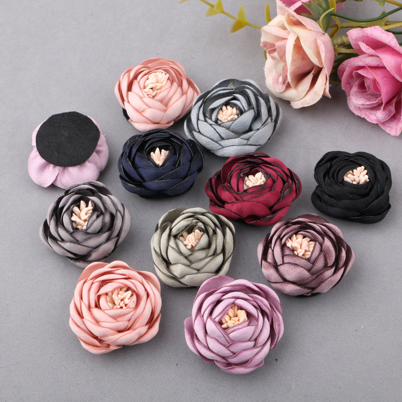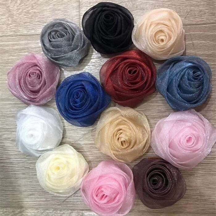 現物卸売り高級韓国欧根紗5cm立体薔薇つぼみ亮紗小花靴花胸花飾り