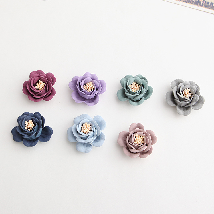韓国版麻布花立体ツバキの花4cm靴の帽子の装飾の小さい花のイヤリングの装飾