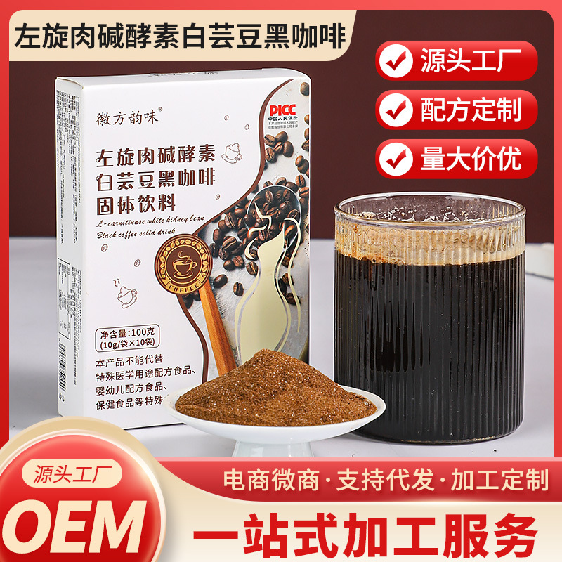 左旋肉アルカリ酵素白芸豆黒コーヒー固体飲料無糖0無脂インスタントコーヒー粉満腹沖剤