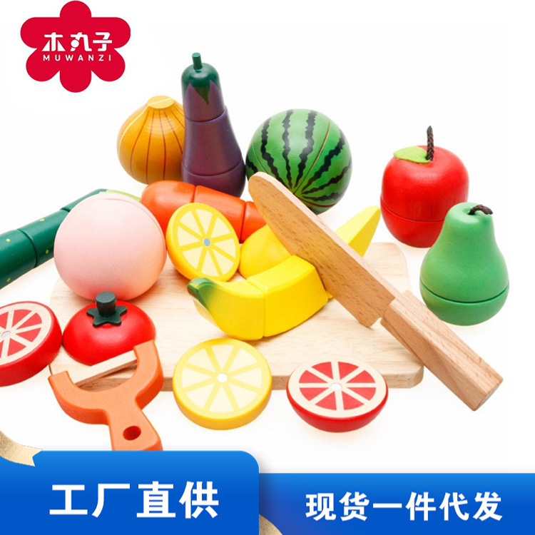 千曼のままごとの木のシミュレーションの果物の磁気はすべて桶の詰め物を見て切って木の益智のおもちゃの積み木を切ります。